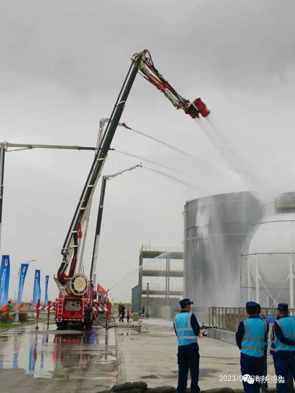 明光浩淼科技應(yīng)國家能源投資集團(tuán)有限責(zé)任公司邀請攜舉高噴射消防車(32米雙臂舉高排煙消防車)、大功率泡沫消防車、三相射流消防車參加了滅火實(shí)戰(zhàn)演習(xí)。同時(shí)也帶來了公司首發(fā)無人駕駛17米舉高噴射壓縮空氣B類泡沫消防車和大流量排澇消防車亮相本次展會(huì)。